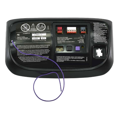 Chamberlain garage door opener models: WD952KD, WD952LD, HD800D. Also known as: 41DB001, 41DB001-1, 41DB001-1C, 41DB001-6, 041DB001-1 For DC Belt Drive garage door openers. Notice the black and purple learn buttons....